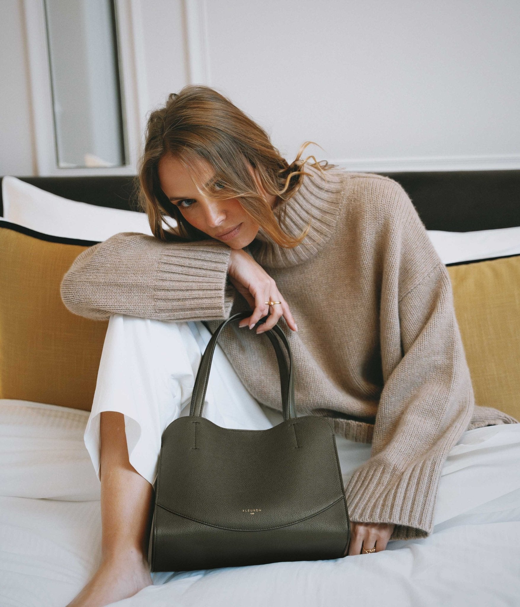 The Mini Oak in grained calf leather Vert Olive charms with its natural yet refined allure, offered in a compact format designed to accompany your days with lightness and style. Its structured silhouette combines practicality and elegance, providing just the right space for your essentials while maintaining clean, contemporary lines.