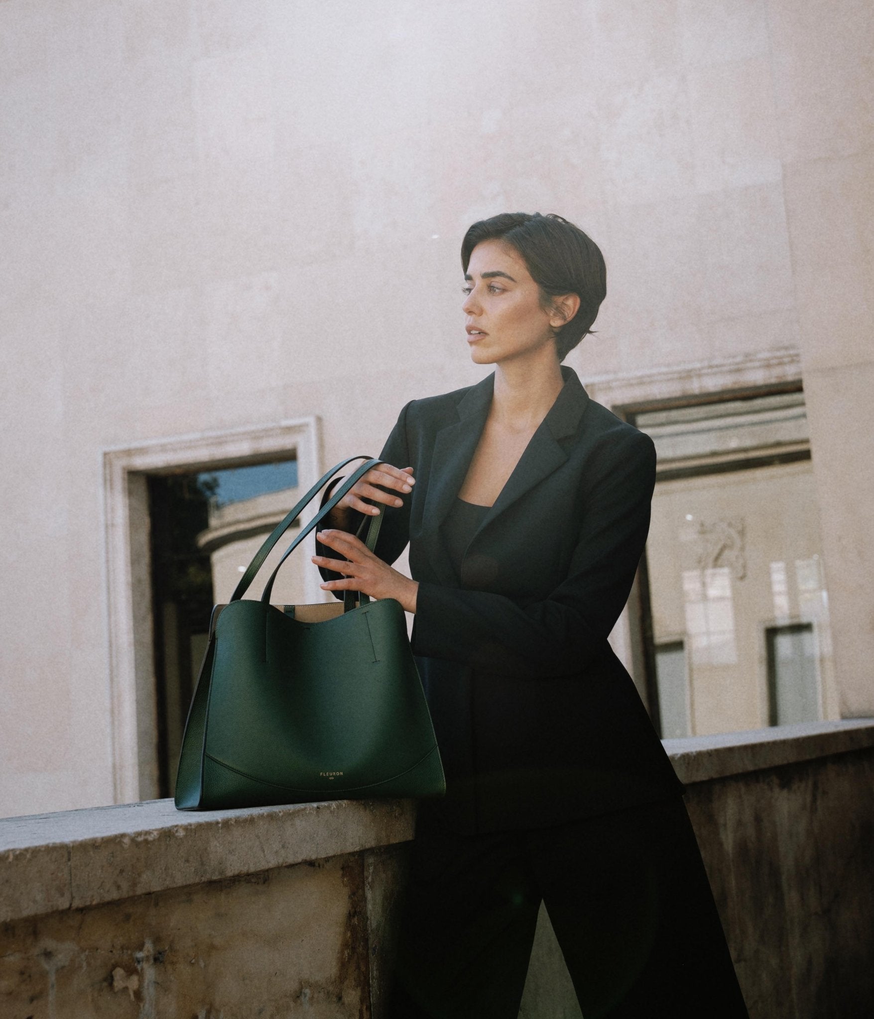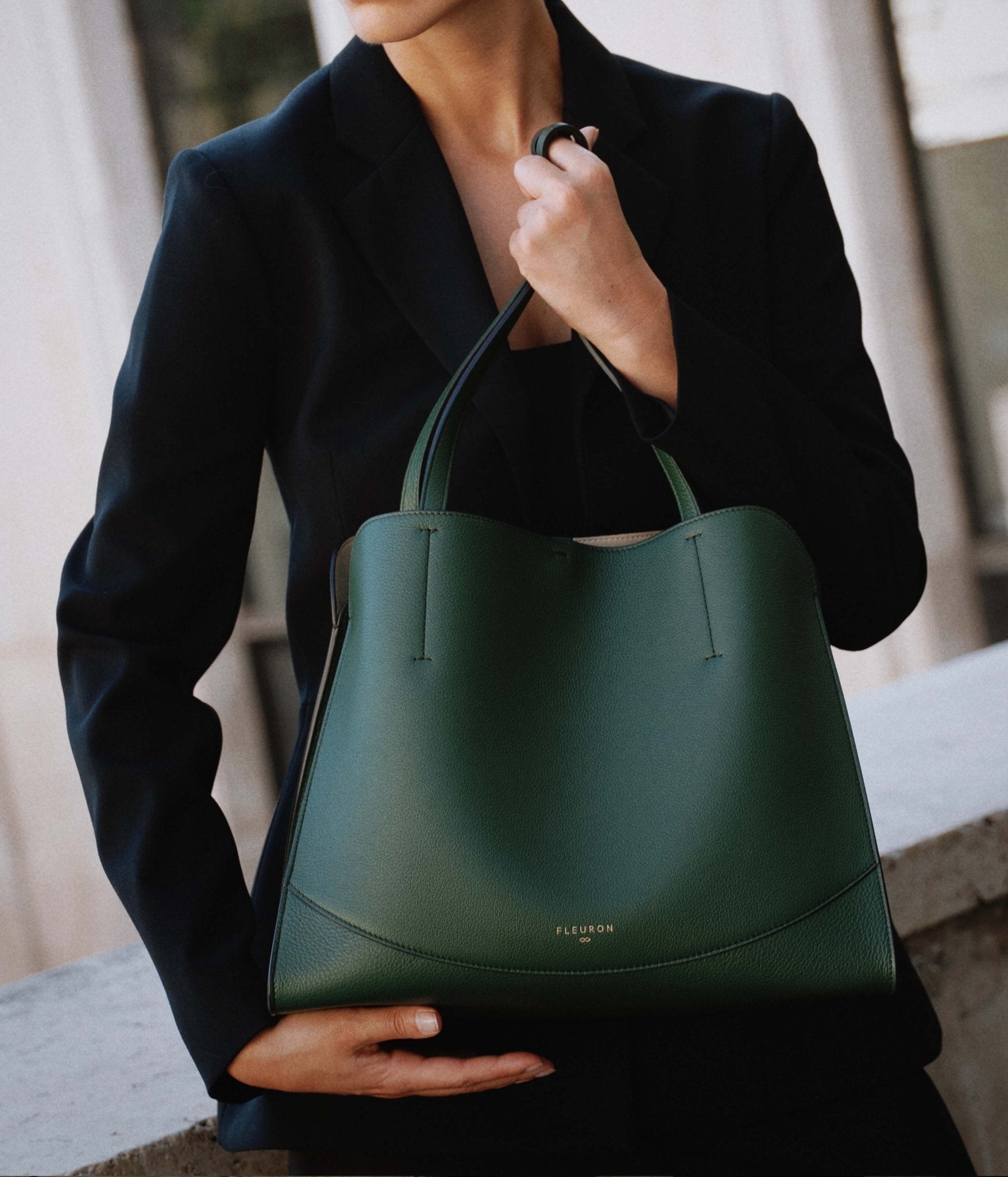 The Medium Oak tote in Vert Sapin stands out as a contemporary essential: a statement piece that blends depth, modernity, and timeless elegance.