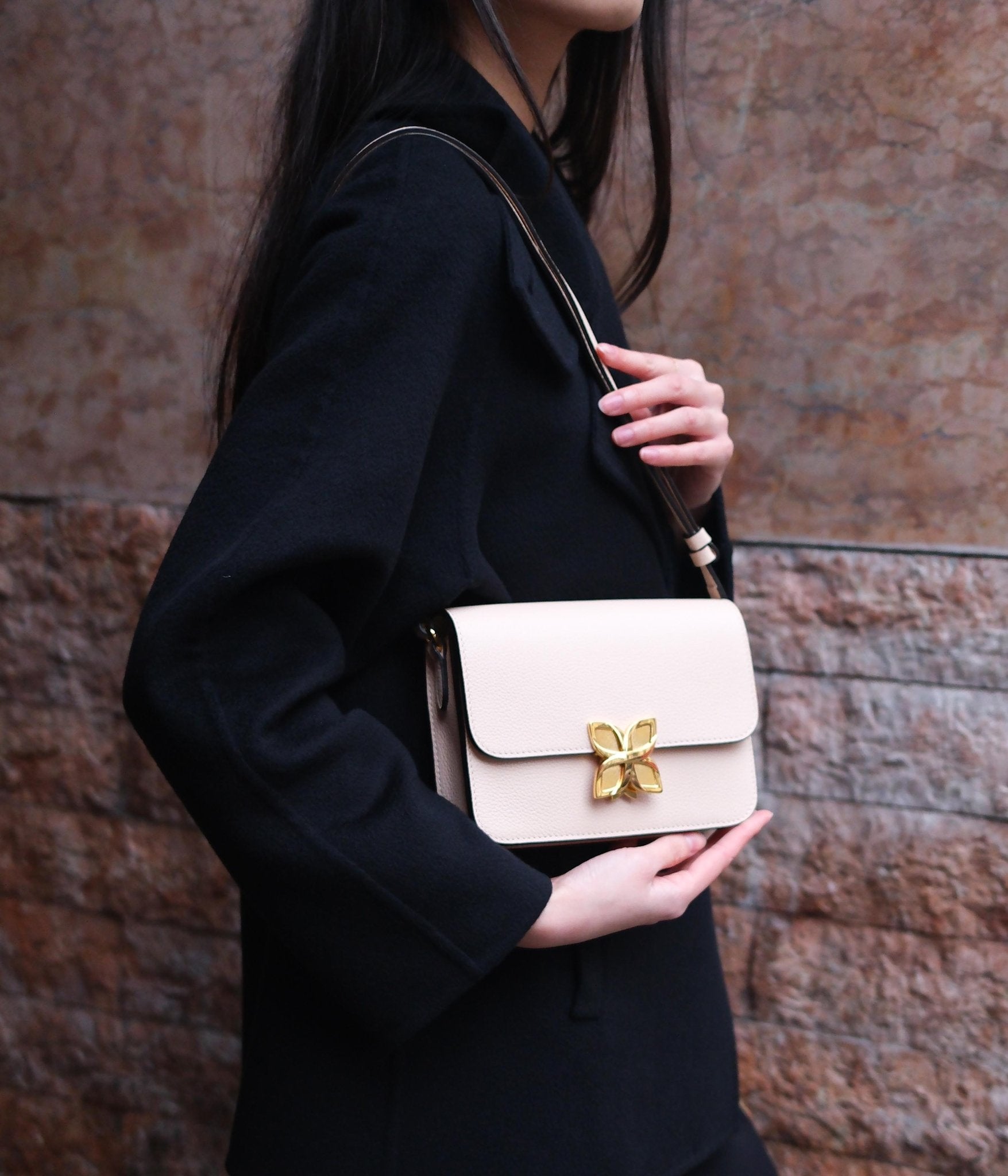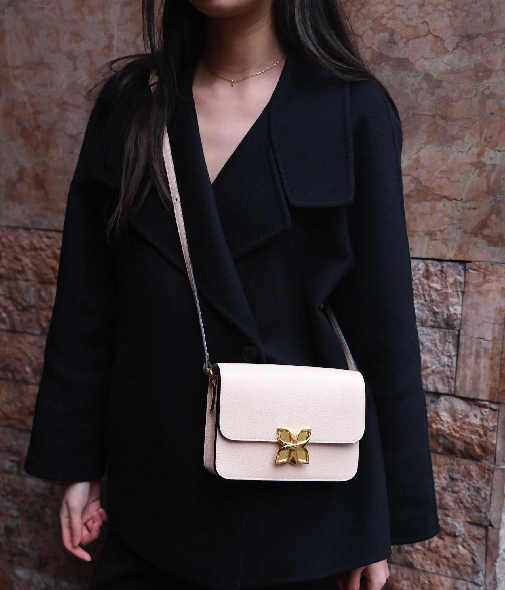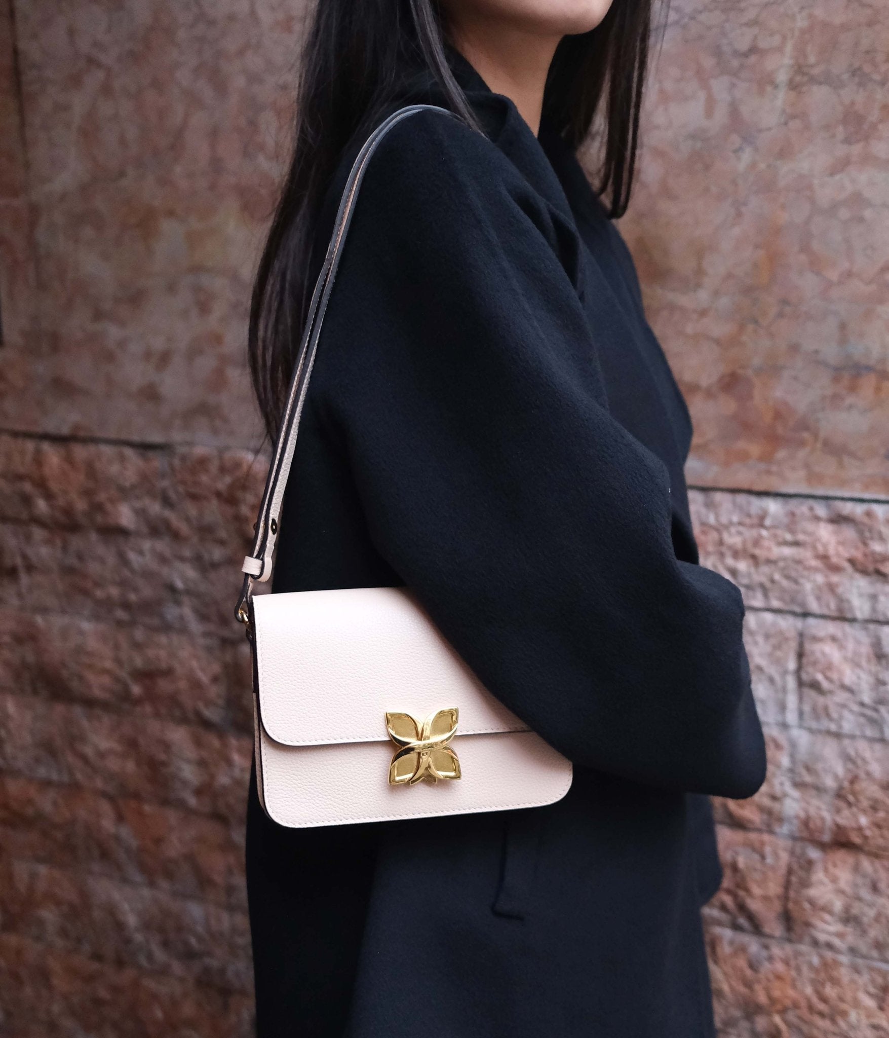 Let yourself be captivated by the delicate charm of the Mini Hortensia in Light Pink, where the grained calfskin reveals a soft, luminous shade with a subtle hint of freshness. Carefully crafted in Italy, this bag perfectly embodies the balance between artisanal craftsmanship and sleek design.