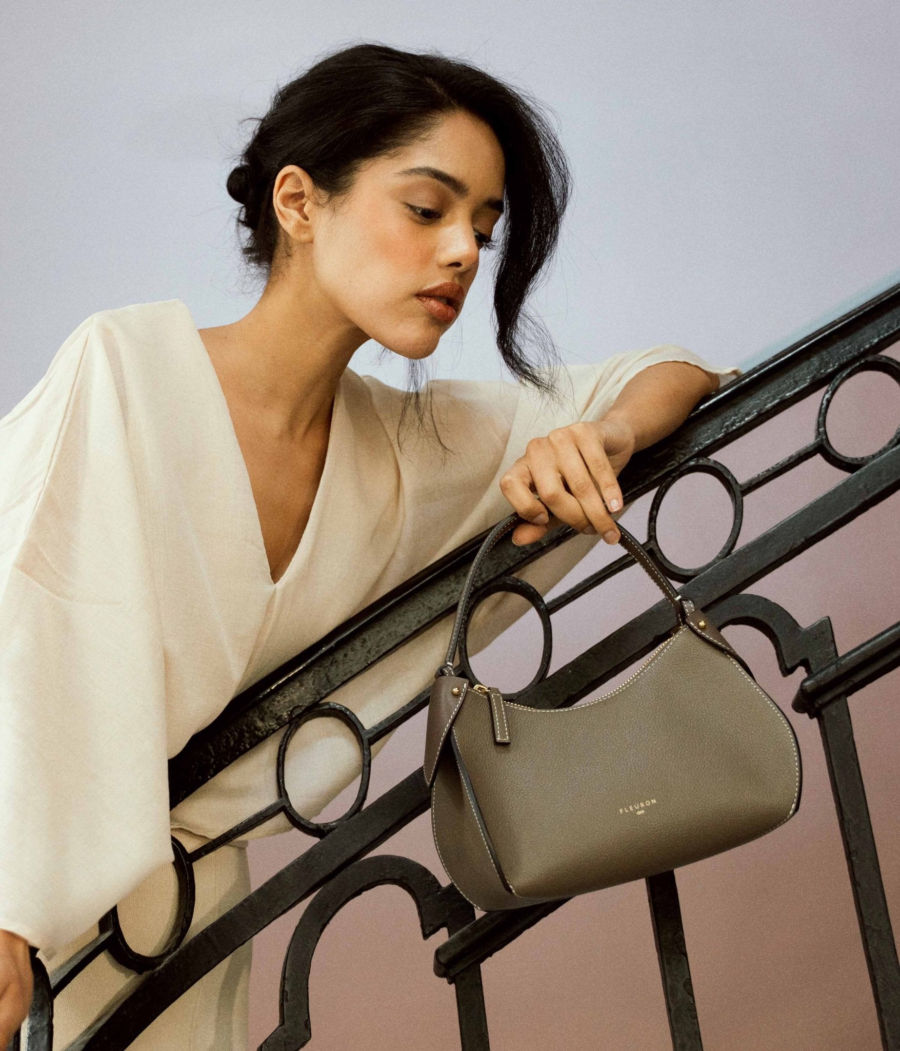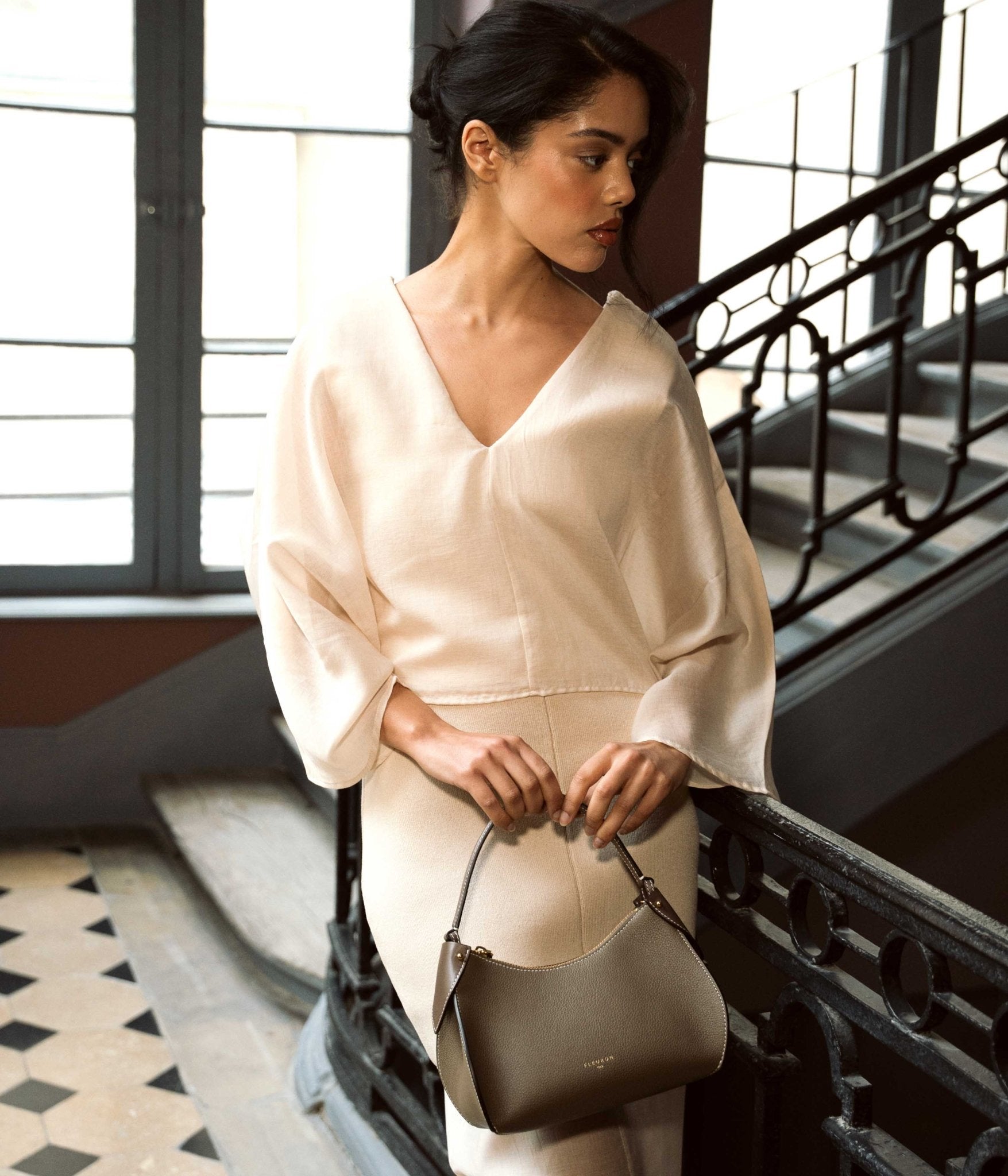 Prestigious and modern, our taupe Mini Pivoine handbag embodies timelessness with elegance.