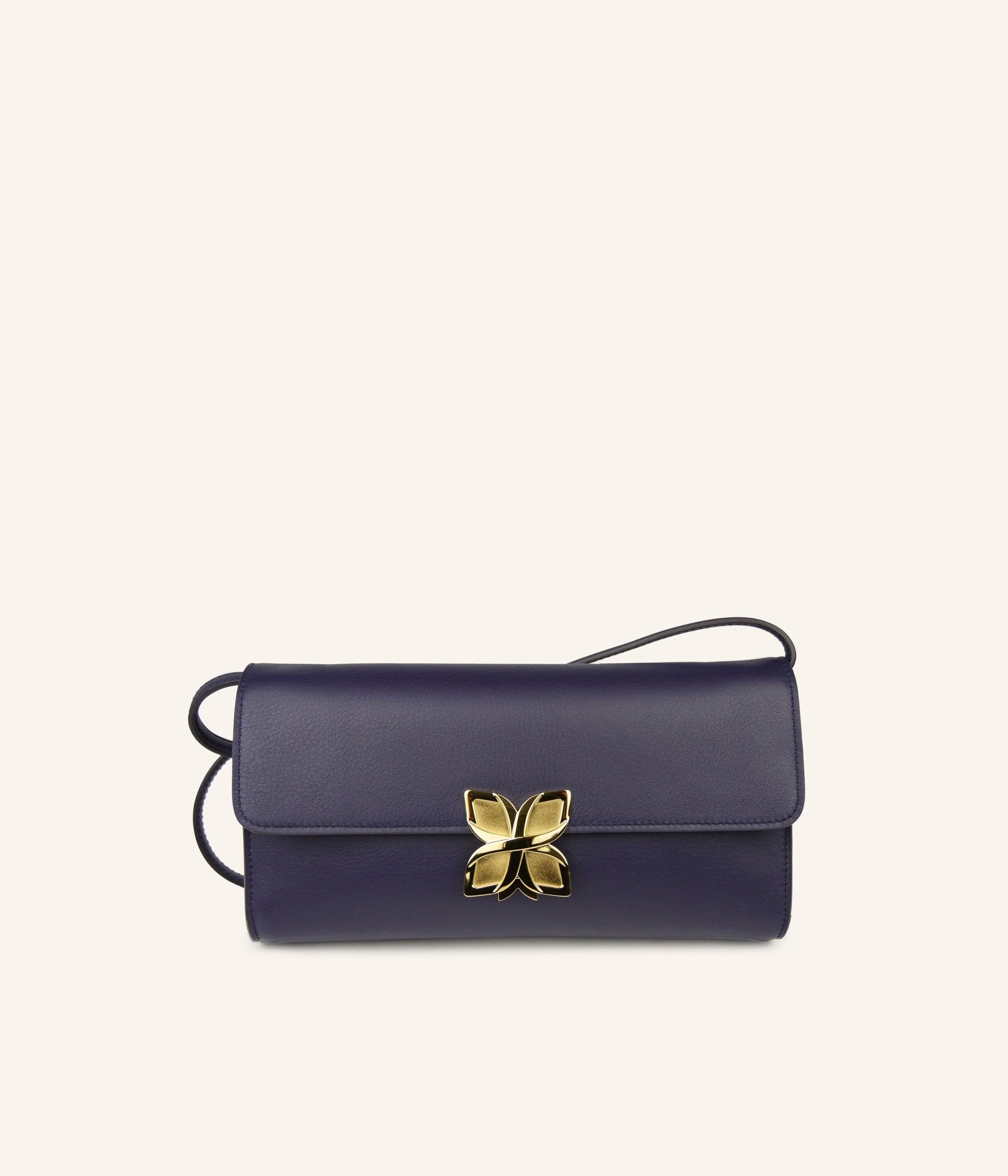 Carry it by hand for a sophisticated look or use its short, removable strap for a more relaxed style. The signature clasp, inspired by the hydrangea flower, adds a poetic touch to this exceptional clutch, designed to accompany you effortlessly from day to night.