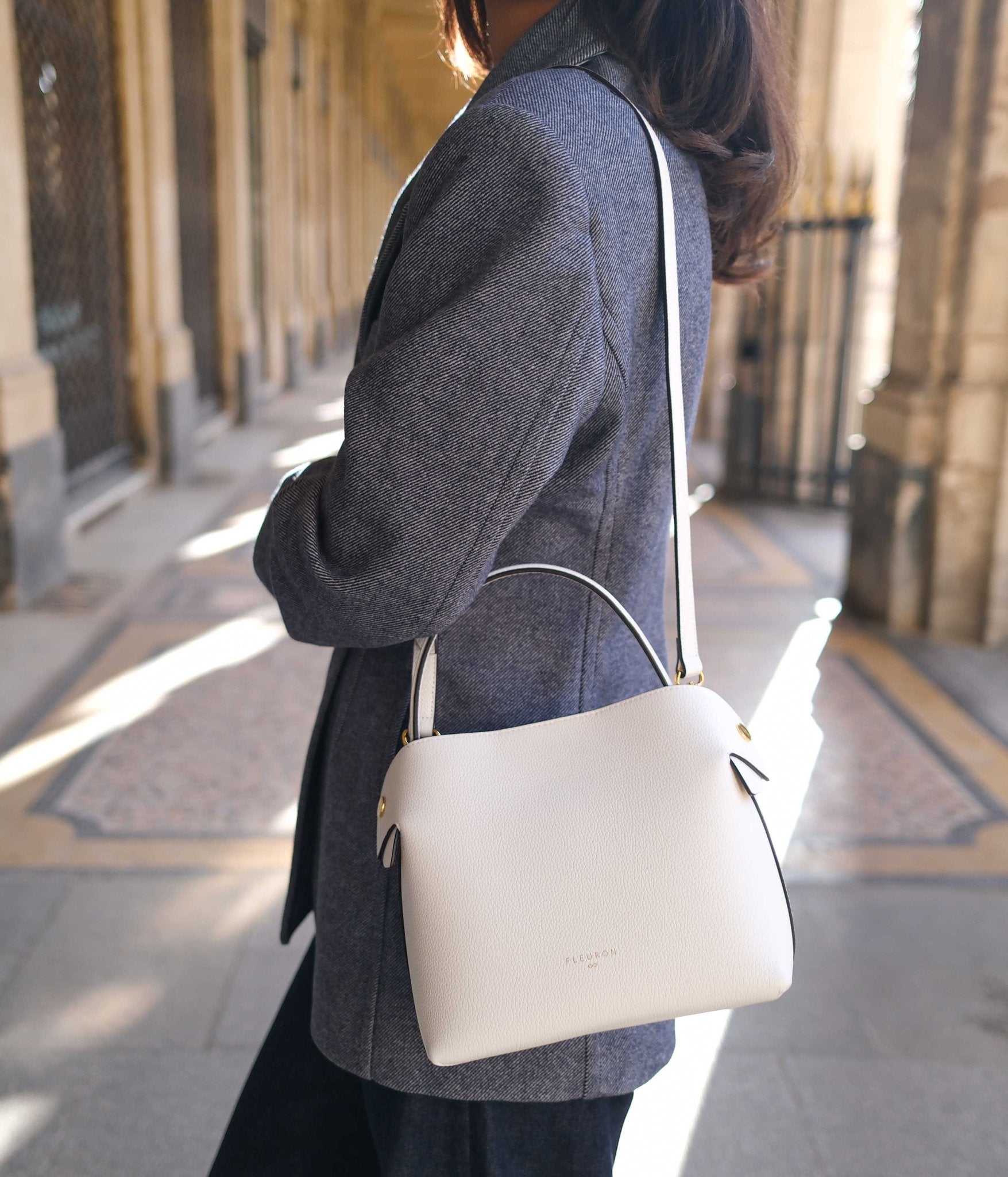 The Medium Swann in Blanc Cassé, with its soft and luminous shade, adds a touch of subtle elegance to any outfit. Its meticulous craftsmanship in our Italian workshop makes it a refined accessory for those seeking style and sophistication.