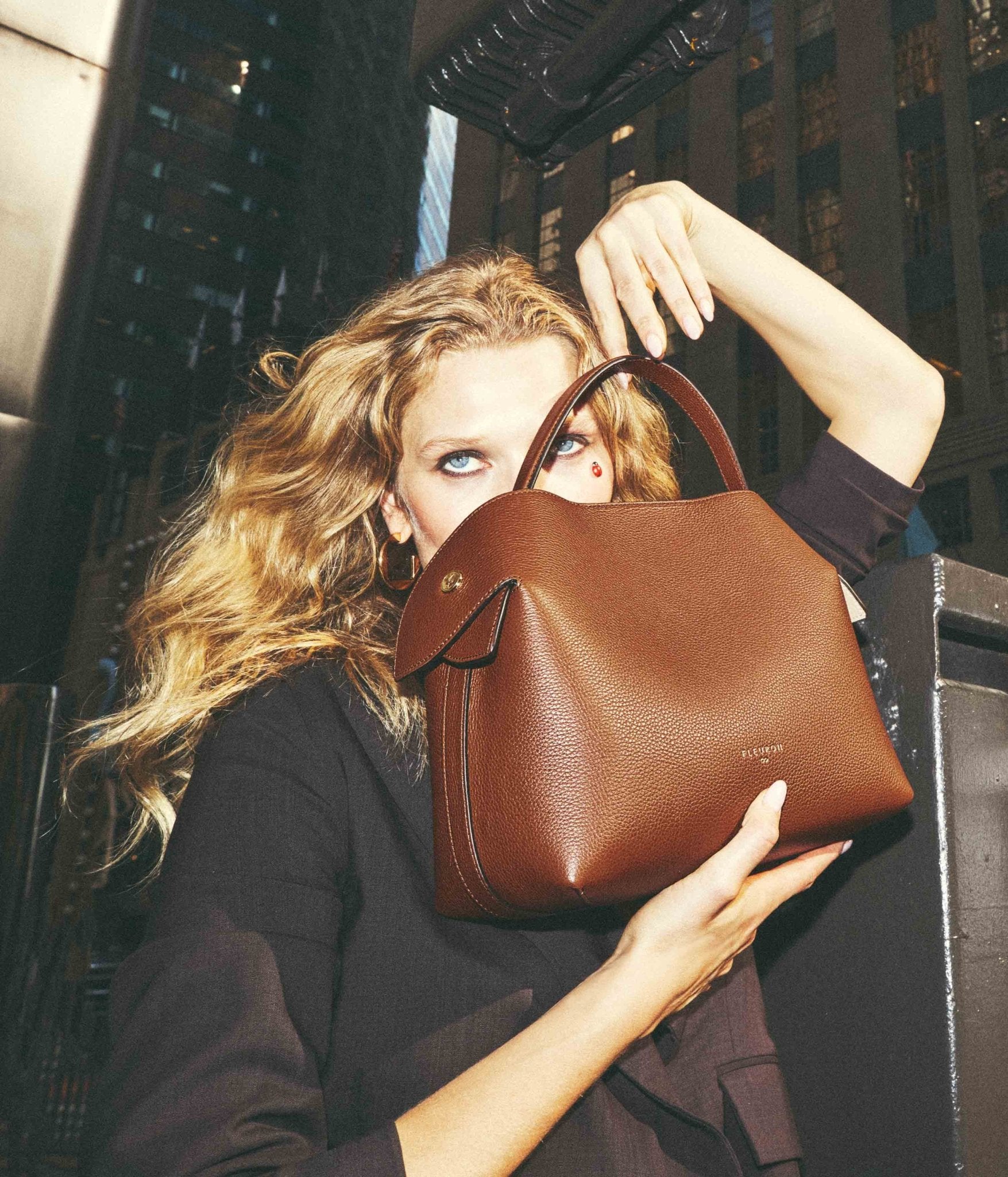 A supple silhouette, an elegant touch with its top handle, the sides fold and unfold like the beating of a wing, for an airy look.